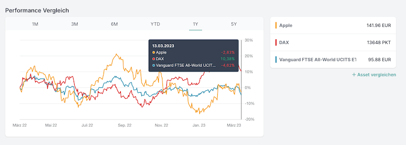 Vergleiche die Performance von Indizes, Fonds, Crypto, Zertifikate, und anderen Assets